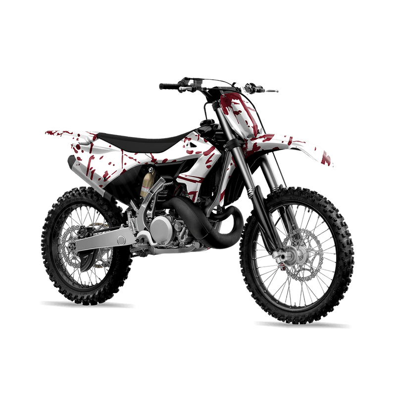 Transform your dirt bike with Bloodbath White dirt bike Camo Wrap, a horror-inspired pattern that drenches your ride in bold crimson splatters and chaotic texture. Designed for Halloween fans and riders who love dark, aggressive style, this wrap turns your bike into a rolling nightmare in the best way possible.