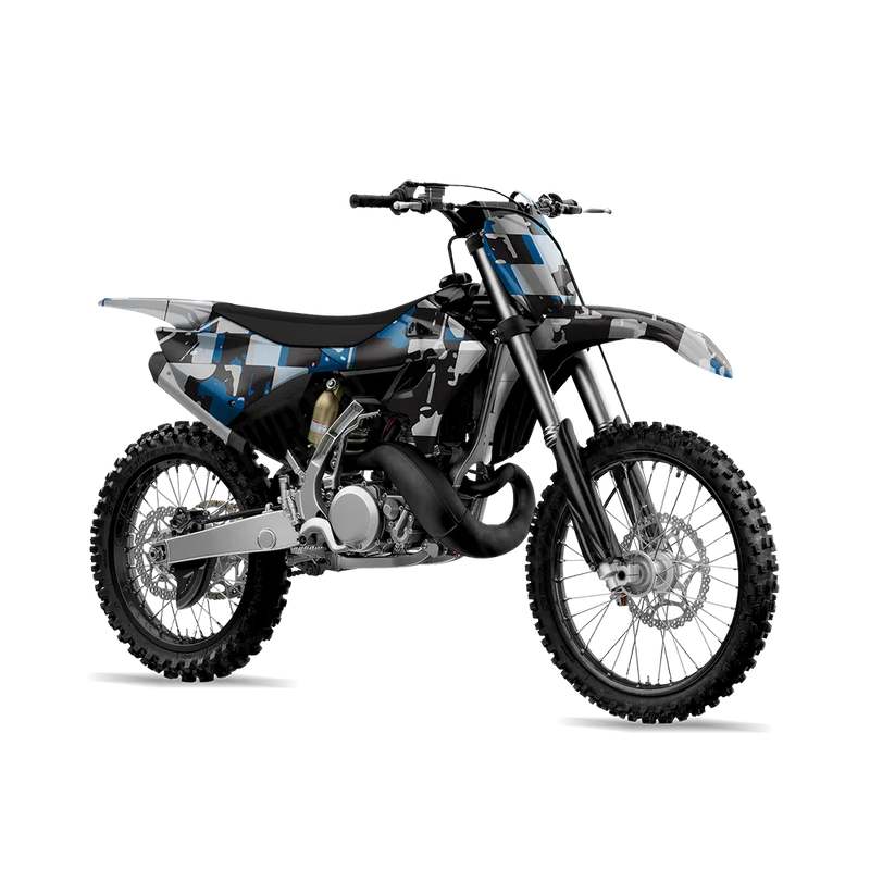 Broken Plaid Blue Tiger Dirt Bike Wraps