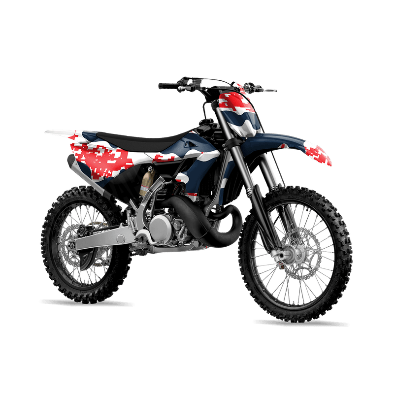 Compound America reimagines the classic digital camo by infusing it with bold splashes of colorful ink. This unique blend of pixelated structure and vibrant detail creates a camo pattern that feels both modern and artistic. Compound is the ideal choice for riders who want their dirt bike to showcase energy, color, and a disruptive style that still nods to traditional camouflage roots.
