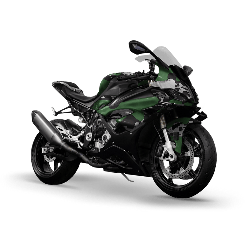 Turn your sport bike into a rolling work of art with Compound Green Tiger Sports Bike Wrap. The Compound design reimagines traditional digital camouflage by layering it with bursts of colorful ink splatters. The result is a chaotic yet stylish mix of precision and creativity—perfect for riders who want a one-of-a-kind look that’s bold, vibrant, and impossible to ignore.