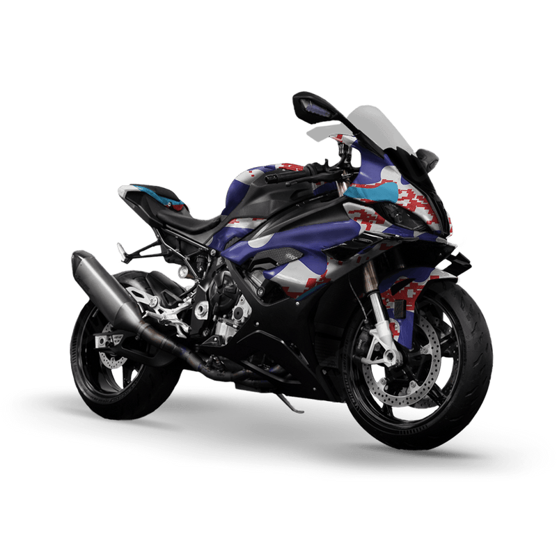 Turn your sport bike into a rolling work of art with Compound M Series Sports Bike Wrap. The Compound design reimagines traditional digital camouflage by layering it with bursts of colorful ink splatters. The result is a chaotic yet stylish mix of precision and creativity—perfect for riders who want a one-of-a-kind look that’s bold, vibrant, and impossible to ignore.