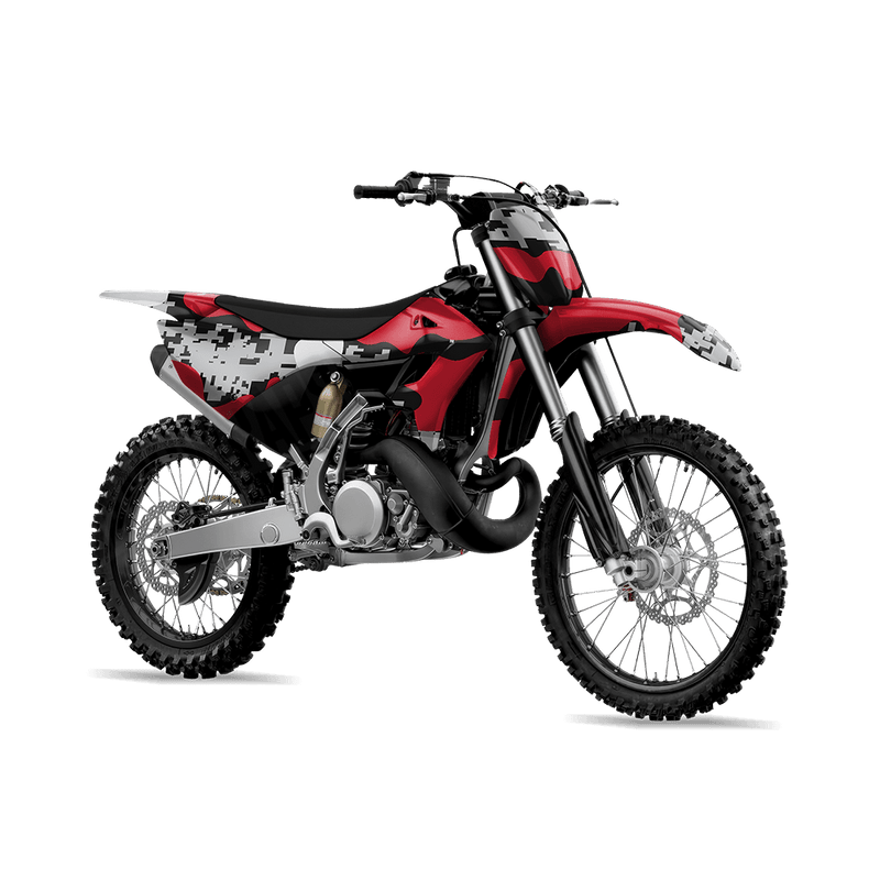 Compound Red Tiger reimagines the classic digital camo by infusing it with bold splashes of colorful ink. This unique blend of pixelated structure and vibrant detail creates a camo pattern that feels both modern and artistic. Compound is the ideal choice for riders who want their dirt bike to showcase energy, color, and a disruptive style that still nods to traditional camouflage roots.