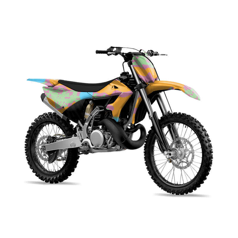 Compound Sherbert reimagines the classic digital camo by infusing it with bold splashes of colorful ink. This unique blend of pixelated structure and vibrant detail creates a camo pattern that feels both modern and artistic. Compound is the ideal choice for riders who want their dirt bike to showcase energy, color, and a disruptive style that still nods to traditional camouflage roots.