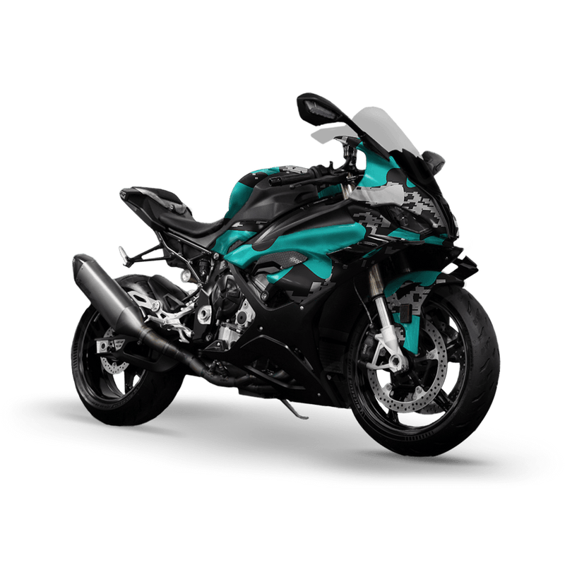 Turn your sport bike into a rolling work of art with Compound Tiffany Blue Tiger Sports Bike Wrap. The Compound design reimagines traditional digital camouflage by layering it with bursts of colorful ink splatters. The result is a chaotic yet stylish mix of precision and creativity—perfect for riders who want a one-of-a-kind look that’s bold, vibrant, and impossible to ignore.