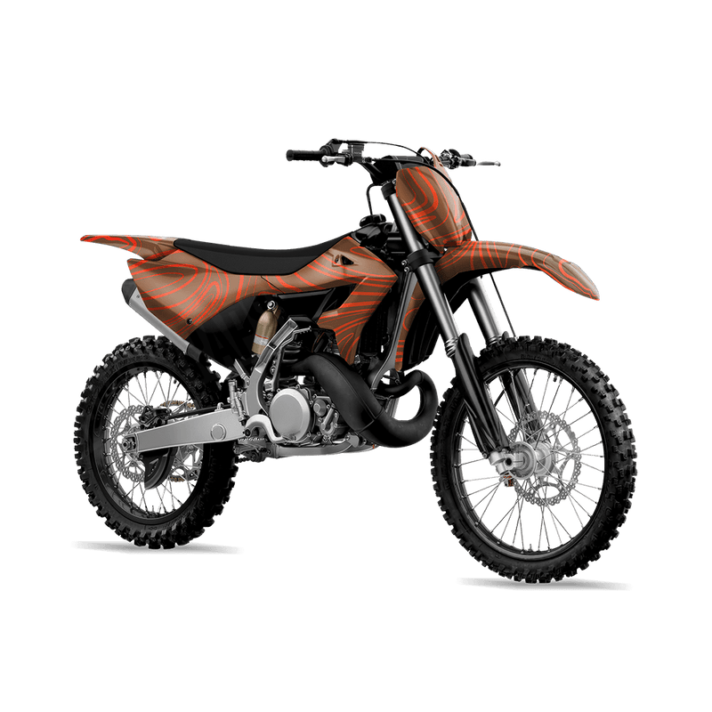 Damascus Autumn draws inspiration from the legendary Damascus steel, known for its flowing, water-like patterns forged into blades of the Near East. This wrap mirrors that same artistry, with intricate lines and organic waves that create a powerful yet refined camo effect. Riders who choose Damascus get a dirt bike design that feels both historic and modern, carrying the strength of tradition with a sleek custom edge.