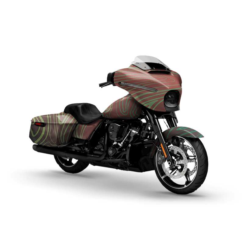 Transform your motorcycle with Damascus Fiesta Motorcycle Camo Wrap, a pattern inspired by the flowing textures of forged Damascus steel. With intricate, wave-like movement throughout, this design adds a refined, battle-ready look that brings craftsmanship and strength to your custom ride.