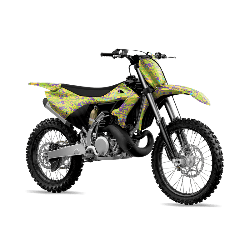Digital Carnival delivers the sharp, pixelated look of modern military camouflage. Built from varying-sized digital blocks, this design creates a clean, tech-inspired camo that feels both tactical and futuristic. For riders who want their dirt bike to stand out with a strong, structured pattern rooted in military heritage, Digital brings a bold and unmistakable style.