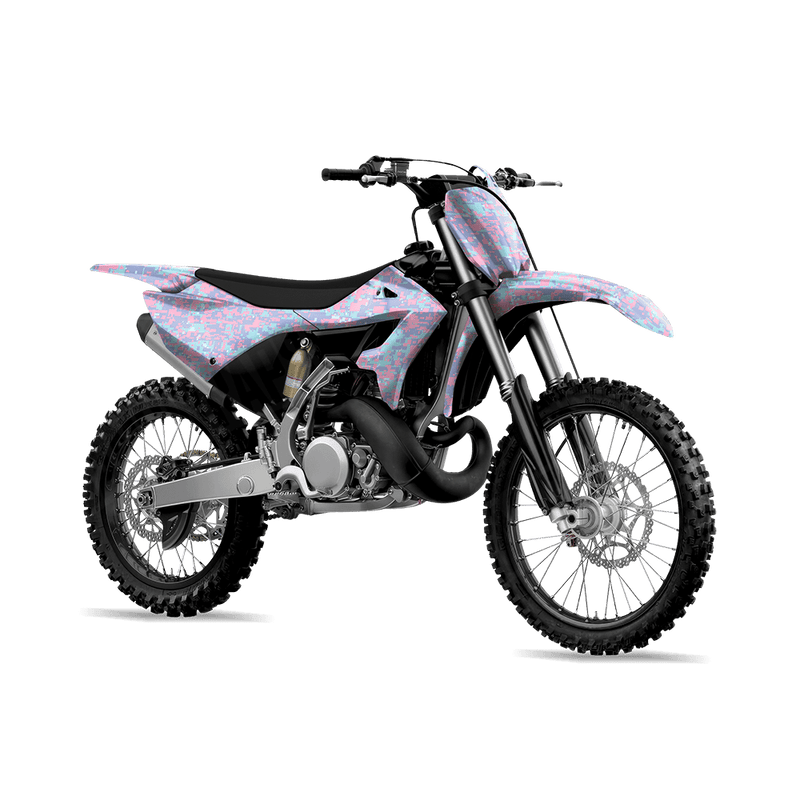 Digital Cotton Candy delivers the sharp, pixelated look of modern military camouflage. Built from varying-sized digital blocks, this design creates a clean, tech-inspired camo that feels both tactical and futuristic. For riders who want their dirt bike to stand out with a strong, structured pattern rooted in military heritage, Digital brings a bold and unmistakable style.