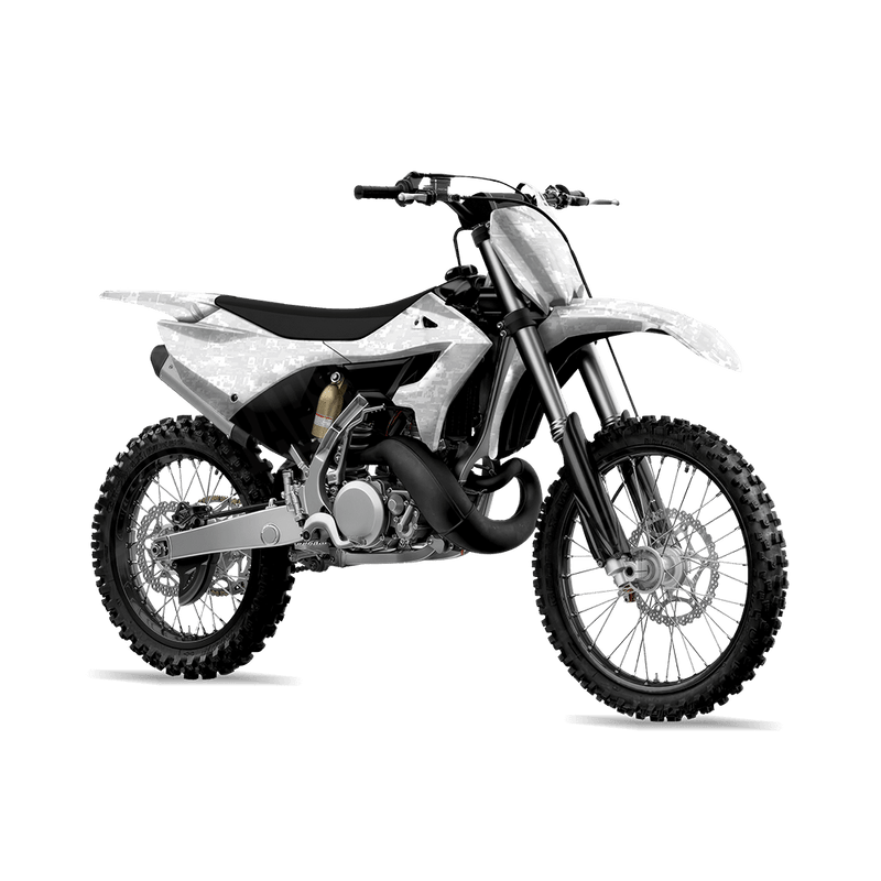 Digital Elite White delivers the sharp, pixelated look of modern military camouflage. Built from varying-sized digital blocks, this design creates a clean, tech-inspired camo that feels both tactical and futuristic. For riders who want their dirt bike to stand out with a strong, structured pattern rooted in military heritage, Digital brings a bold and unmistakable style.