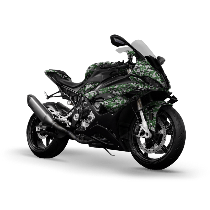 Give your bike a cutting-edge tactical look with Digital Green Tiger Sports Bike Wrap. Modeled after military digital camouflage, this pattern uses pixelated blocks of varying sizes and colors to create a sharp, modern style. Perfect for riders who want their sport bike to project speed, precision, and a battle-ready edge.