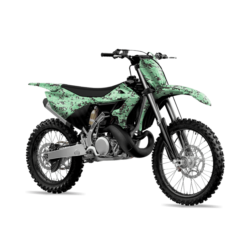 Digital Mint Chocolate Chip delivers the sharp, pixelated look of modern military camouflage. Built from varying-sized digital blocks, this design creates a clean, tech-inspired camo that feels both tactical and futuristic. For riders who want their dirt bike to stand out with a strong, structured pattern rooted in military heritage, Digital brings a bold and unmistakable style.