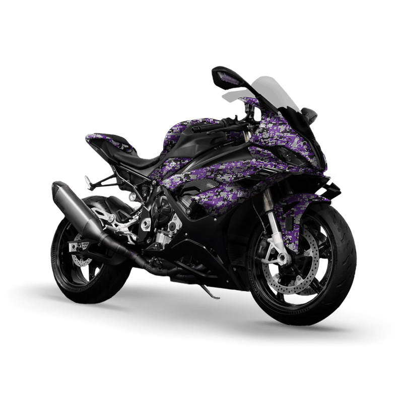 Give your bike a cutting-edge tactical look with Digital Purple Tiger Sports Bike Wrap. Modeled after military digital camouflage, this pattern uses pixelated blocks of varying sizes and colors to create a sharp, modern style. Perfect for riders who want their sport bike to project speed, precision, and a battle-ready edge.