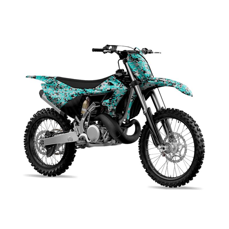 Digital Tiffany Blue Tiger delivers the sharp, pixelated look of modern military camouflage. Built from varying-sized digital blocks, this design creates a clean, tech-inspired camo that feels both tactical and futuristic. For riders who want their dirt bike to stand out with a strong, structured pattern rooted in military heritage, Digital brings a bold and unmistakable style.