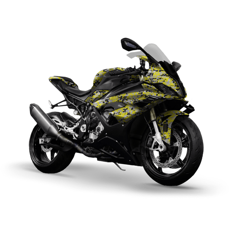 Give your bike a cutting-edge tactical look with Digital Yellow Tiger Sports Bike Wrap. Modeled after military digital camouflage, this pattern uses pixelated blocks of varying sizes and colors to create a sharp, modern style. Perfect for riders who want their sport bike to project speed, precision, and a battle-ready edge.