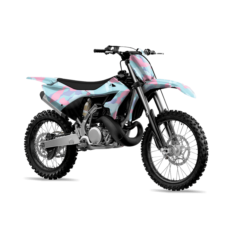 Erratic Cotton Candy features a chaotic collision of jagged shapes and shifting colors, creating a camo pattern that feels wild yet uniform. Designed to stand out while still holding a rugged edge, Erratic is perfect for riders who want their dirt bike to showcase energy, unpredictability, and a truly unique take on camouflage.