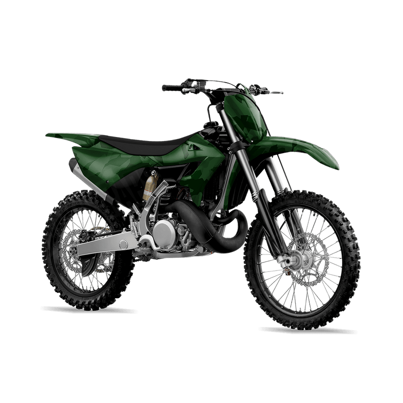Erratic Elite Green features a chaotic collision of jagged shapes and shifting colors, creating a camo pattern that feels wild yet uniform. Designed to stand out while still holding a rugged edge, Erratic is perfect for riders who want their dirt bike to showcase energy, unpredictability, and a truly unique take on camouflage.