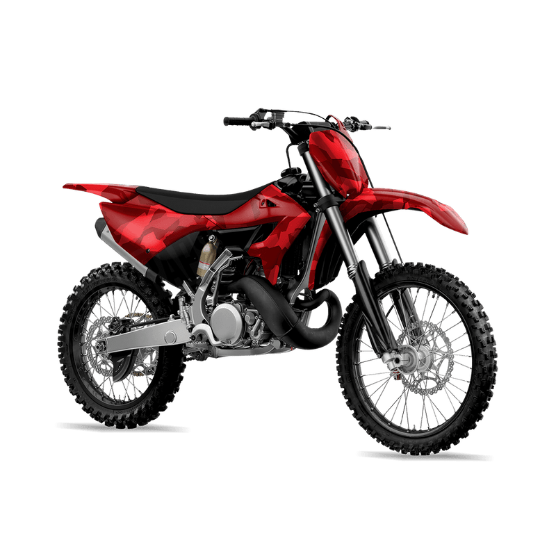 Erratic Elite Red features a chaotic collision of jagged shapes and shifting colors, creating a camo pattern that feels wild yet uniform. Designed to stand out while still holding a rugged edge, Erratic is perfect for riders who want their dirt bike to showcase energy, unpredictability, and a truly unique take on camouflage.