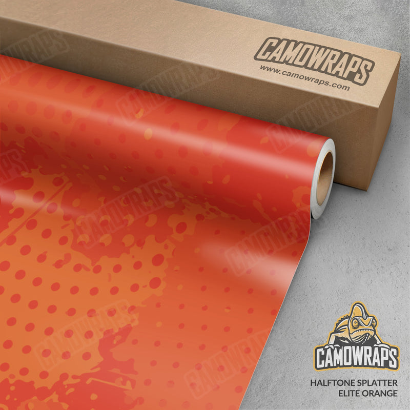 Printed on superior automotive-grade UV-resistant, non-permanent, bubble-free adhesive vinyl wrap, using state-of-the-art printing technology, providing long outdoor life and reliability. Available in your choice of 3M, Avery Dennison film with finish options of Matte, Gloss, or Satin. Halftone Splatter Elite Orange Camo Vinyl Wraps are perfect for cars, watercraft, offroad vehicles, appliances, or any nontextured surface.