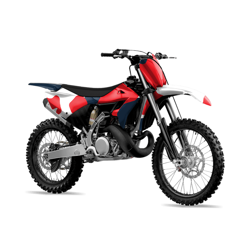Cumulus America combines the familiar ruggedness of traditional camouflage with soft, cloud-like forms for a unique twist on classic camo. The result is a design that feels natural yet distinctive, blending atmospheric elements with camo styling to give your dirt bike a bold, one-of-a-kind look. For riders who want their bike to carry both strength and fluidity, Cumulus is the perfect choice.