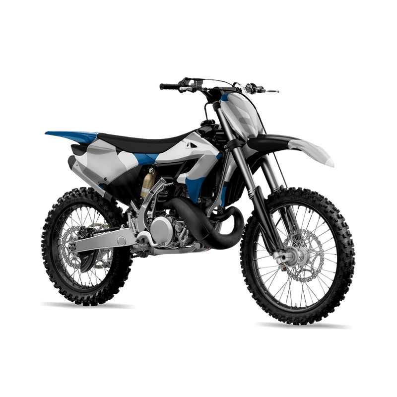 Jumbo Cumulus Blue Tiger Camo Dirt Bike Vinyl Wrap