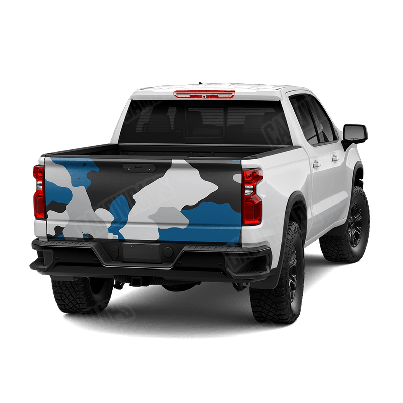 Jumbo Cumulus Blue Tiger Camo Tailgate Vinyl Wrap