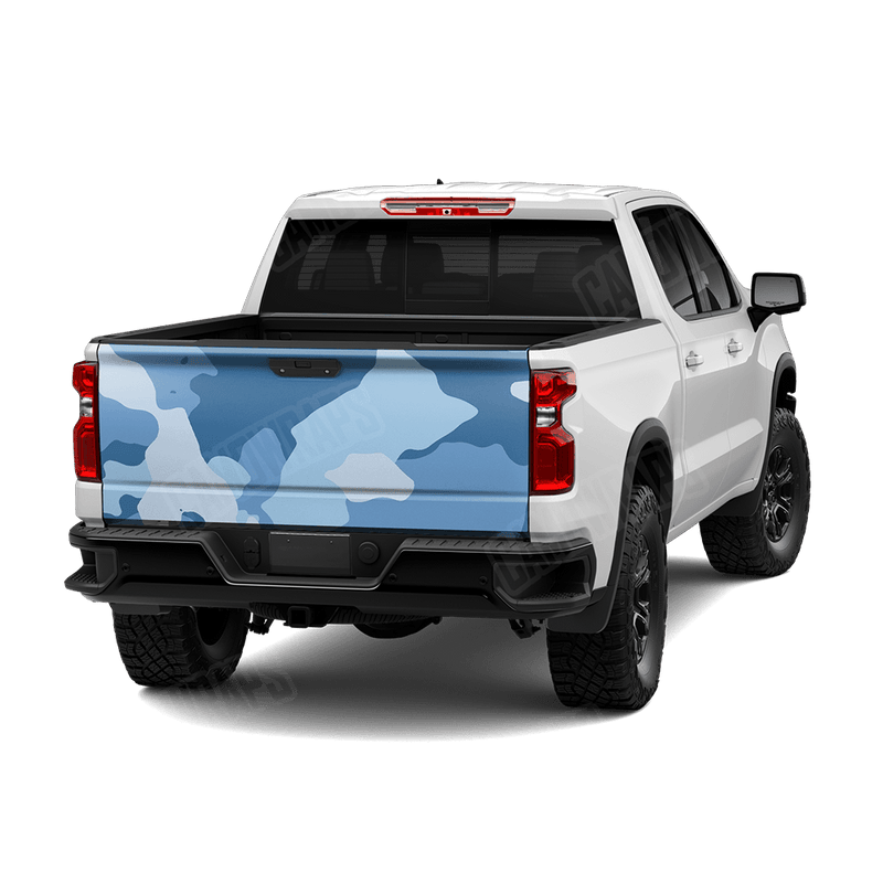 Jumbo Cumulus Cool Blue Camo Tailgate Vinyl Wrap
