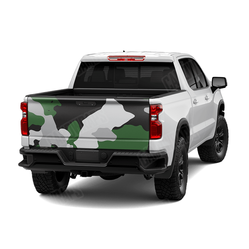 Jumbo Cumulus Green Tiger Camo Tailgate Vinyl Wrap