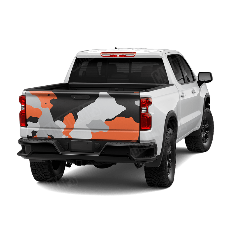 Jumbo Cumulus Orange Tiger Camo Tailgate Vinyl Wrap