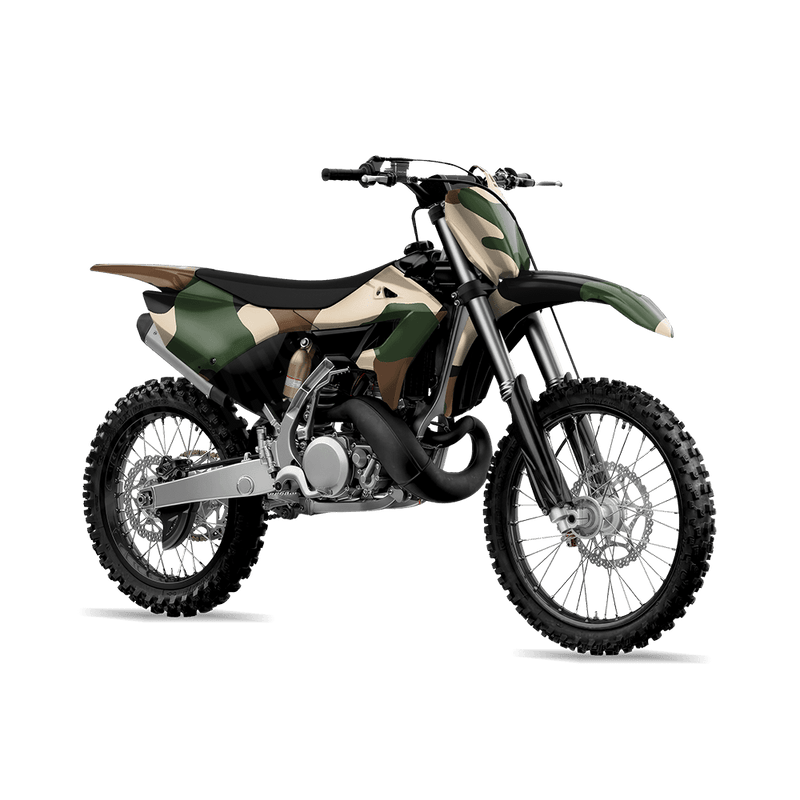 Jumbo Cumulus Woodland Camo Dirt Bike Vinyl Wrap