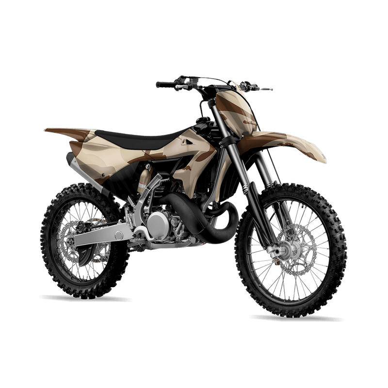 Ragged Desert takes the familiar look of traditional military camouflage and gives it a rugged, updated twist. With slightly broken edges and subtle variations, Ragged creates a raw and weathered style that feels both classic and fresh. This pattern is perfect for riders who want their dirt bike to carry a proven camo design with a tougher, more distressed edge.