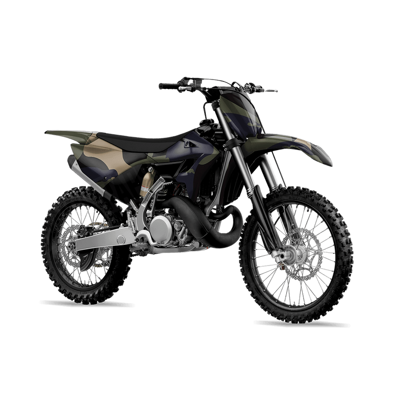 Ragged Militant Blue takes the familiar look of traditional military camouflage and gives it a rugged, updated twist. With slightly broken edges and subtle variations, Ragged creates a raw and weathered style that feels both classic and fresh. This pattern is perfect for riders who want their dirt bike to carry a proven camo design with a tougher, more distressed edge.
