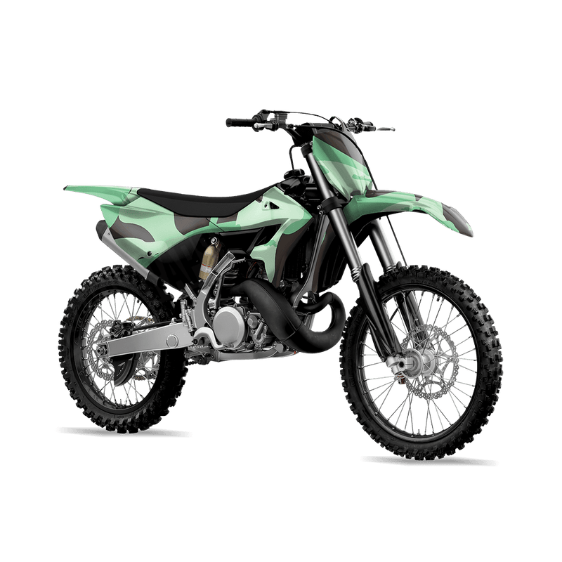 Ragged Mint Chocolate Chip takes the familiar look of traditional military camouflage and gives it a rugged, updated twist. With slightly broken edges and subtle variations, Ragged creates a raw and weathered style that feels both classic and fresh. This pattern is perfect for riders who want their dirt bike to carry a proven camo design with a tougher, more distressed edge.