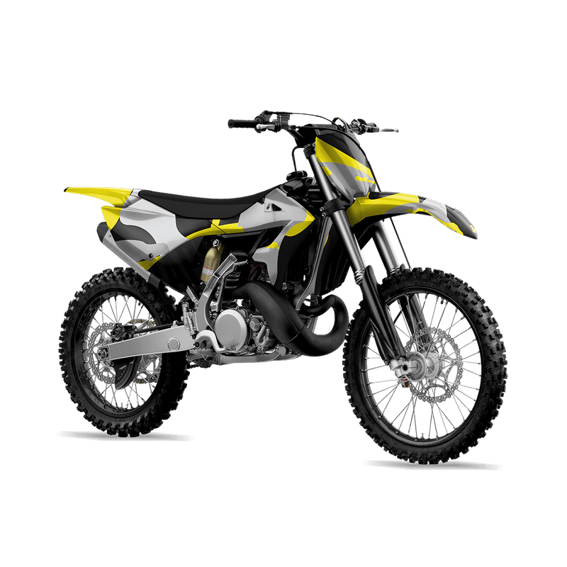 Ragged Yellow Tiger takes the familiar look of traditional military camouflage and gives it a rugged, updated twist. With slightly broken edges and subtle variations, Ragged creates a raw and weathered style that feels both classic and fresh. This pattern is perfect for riders who want their dirt bike to carry a proven camo design with a tougher, more distressed edge.