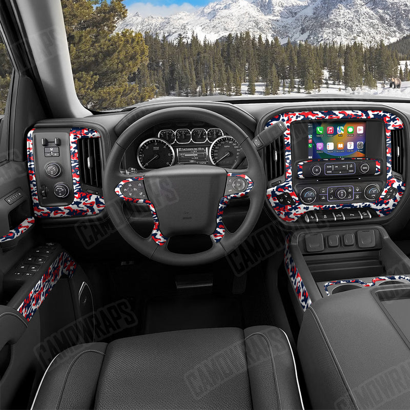 Upgrade your ride's interior with Classic America Car Interior Skins, a branded CamoWraps pattern that embodies the essence of traditional camouflage. Designed to help your vehicle blend in seamlessly with its surroundings, this pattern delivers a timeless military-inspired look that balances simplicity and stealth. Ideal for drivers who appreciate classic camo aesthetics, it adds rugged charm and depth to your dashboard, door panels, and trim.