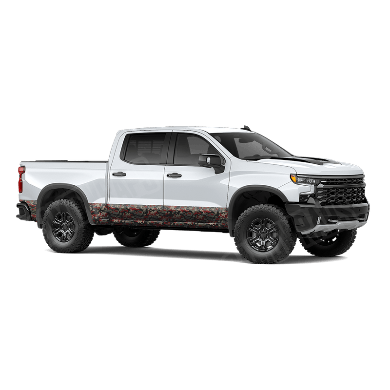 Upgrade your truck’s lower body with Classic Militant Red Rocker Panel Camo Wrap, a timeless camo design that offers traditional concealment with battle-proven shapes and tones. It's the go-to pattern for outdoorsmen and hunters looking for that classic camo touch.