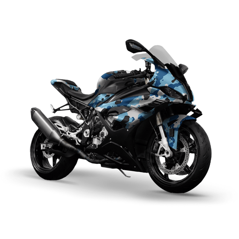 Large Cumulus Baby Blue Camo Sports Bike Vinyl Wrap