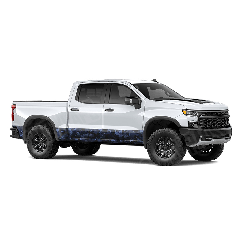 Cumulus Blue Midnight Rocker Panel Camo Wrap adds a soft camo touch and long-lasting protection to your truck’s lower body.