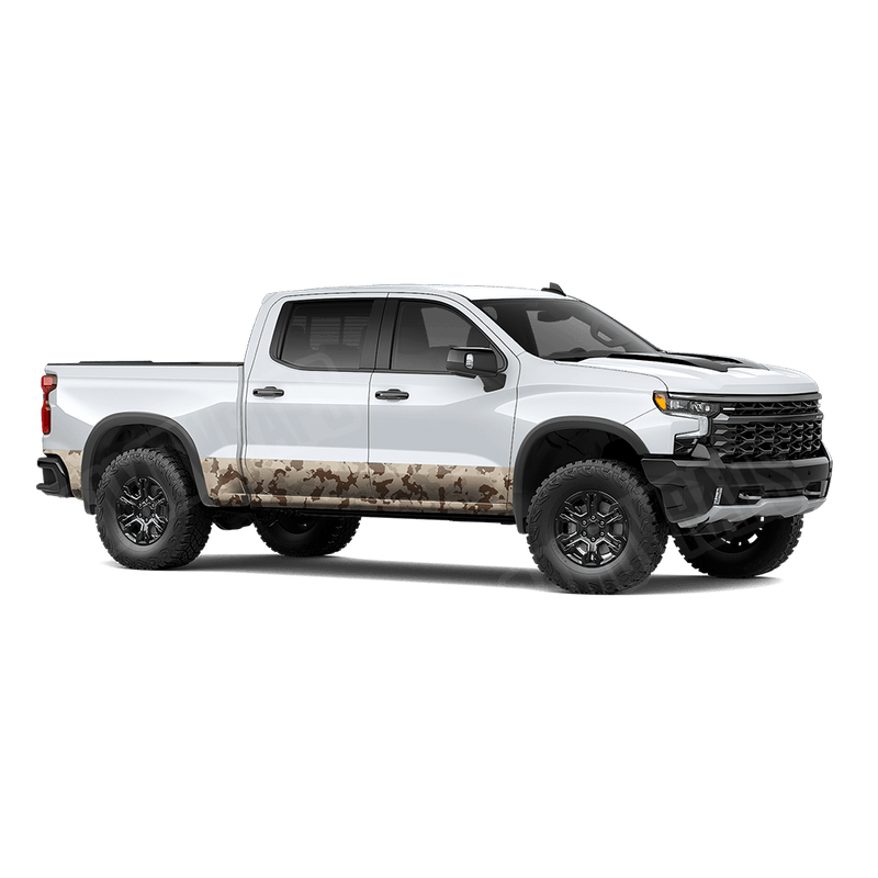 Upgrade your truck’s lower body with Cumulus Desert Rocker Panel Camo Wrap, featuring soft, cloud-inspired shapes layered over natural camouflage forms. This airy, nature-driven design offers a calm but rugged aesthetic for any build.