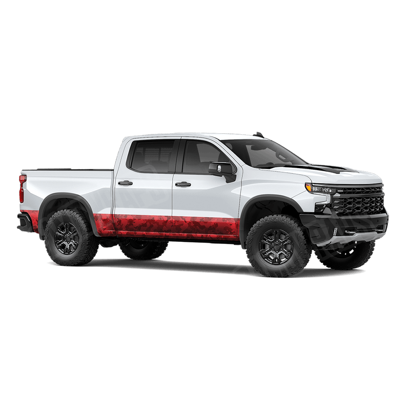 Cumulus Elite Red Rocker Panel Camo Wrap adds a soft camo touch and long-lasting protection to your truck’s lower body.
