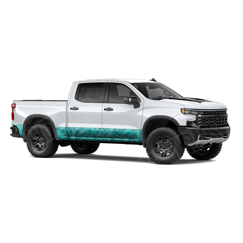Cumulus Elite Tiffany Blue Rocker Panel Camo Wrap adds a soft camo touch and long-lasting protection to your truck’s lower body.