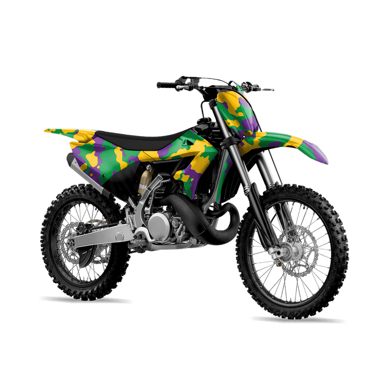 Large Cumulus Mardi Gras Camo Dirt Bike Vinyl Wrap