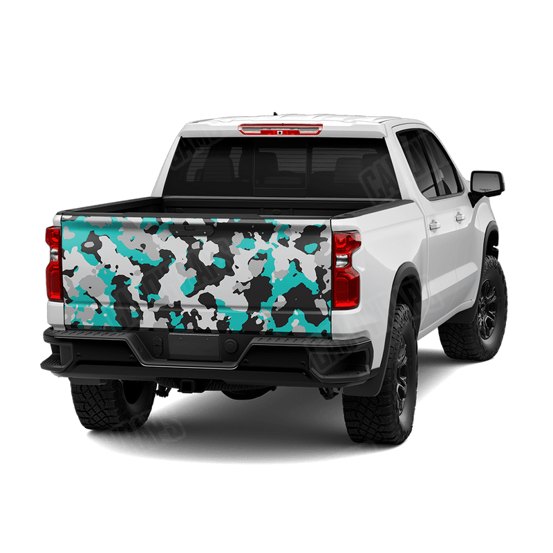Large Cumulus Tiffany Blue Tiger Camo Tailgate Vinyl Wrap