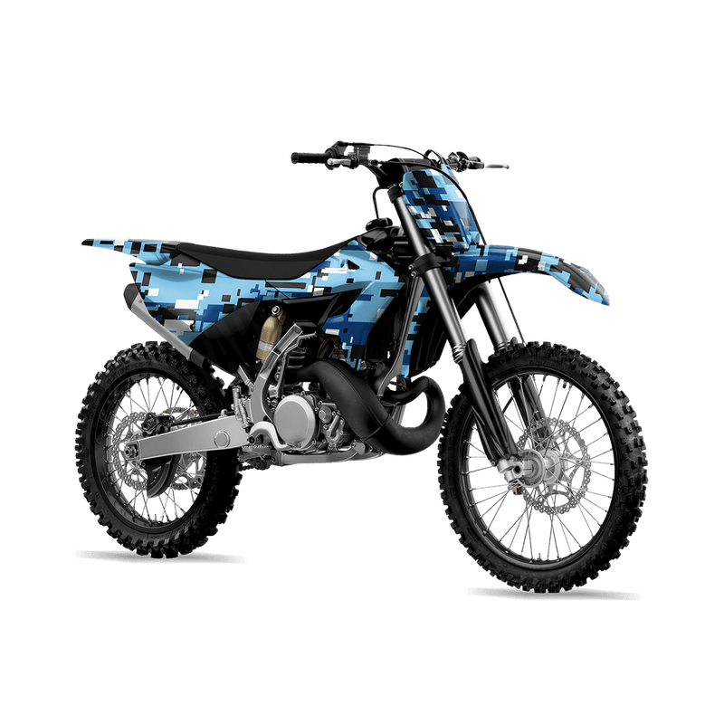 Digital Baby Blue delivers the sharp, pixelated look of modern military camouflage. Built from varying-sized digital blocks, this design creates a clean, tech-inspired camo that feels both tactical and futuristic. For riders who want their dirt bike to stand out with a strong, structured pattern rooted in military heritage, Digital brings a bold and unmistakable style.