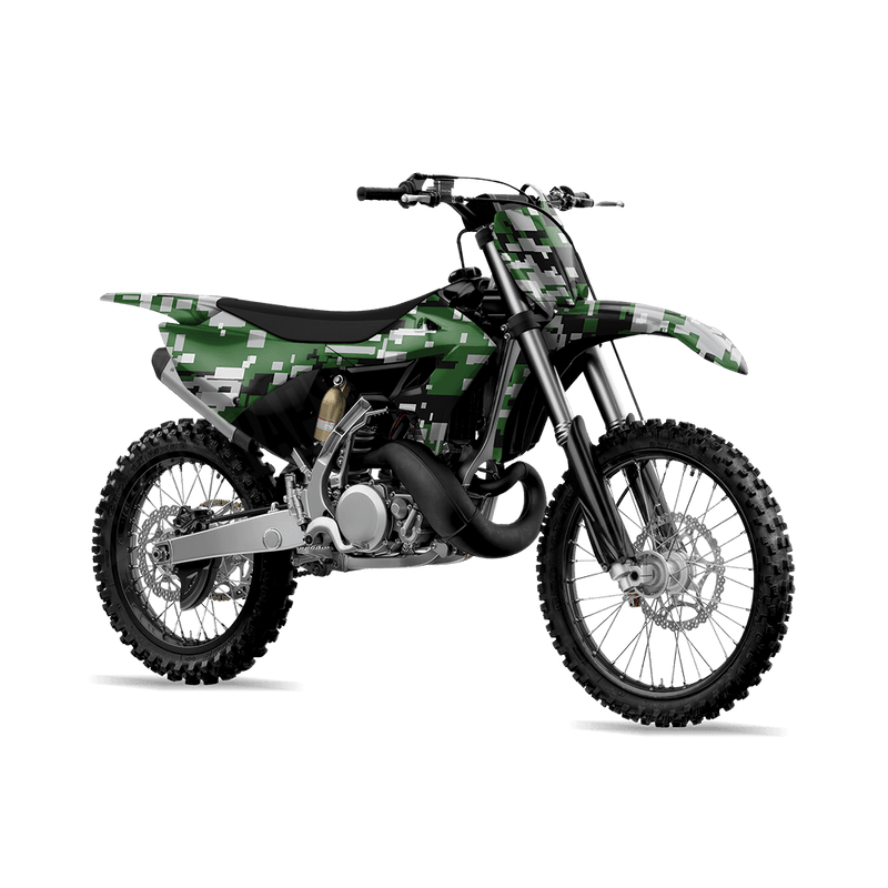 Digital Green Tiger delivers the sharp, pixelated look of modern military camouflage. Built from varying-sized digital blocks, this design creates a clean, tech-inspired camo that feels both tactical and futuristic. For riders who want their dirt bike to stand out with a strong, structured pattern rooted in military heritage, Digital brings a bold and unmistakable style.