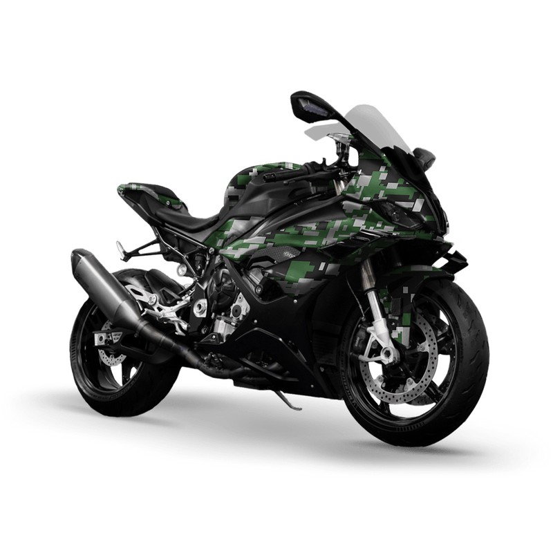 Give your bike a cutting-edge tactical look with Digital Green Tiger Sports Bike Wrap. Modeled after military digital camouflage, this pattern uses pixelated blocks of varying sizes and colors to create a sharp, modern style. Perfect for riders who want their sport bike to project speed, precision, and a battle-ready edge.