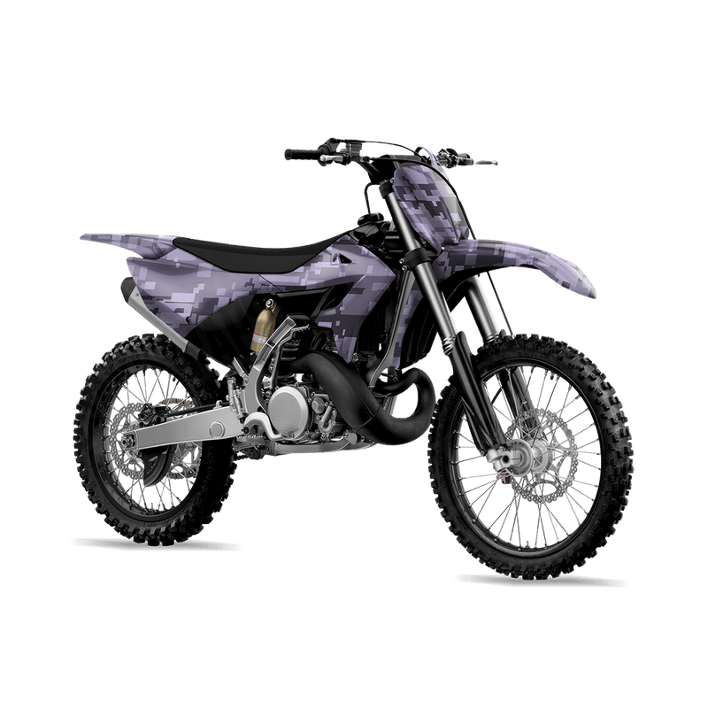 Digital Lilac delivers the sharp, pixelated look of modern military camouflage. Built from varying-sized digital blocks, this design creates a clean, tech-inspired camo that feels both tactical and futuristic. For riders who want their dirt bike to stand out with a strong, structured pattern rooted in military heritage, Digital brings a bold and unmistakable style.