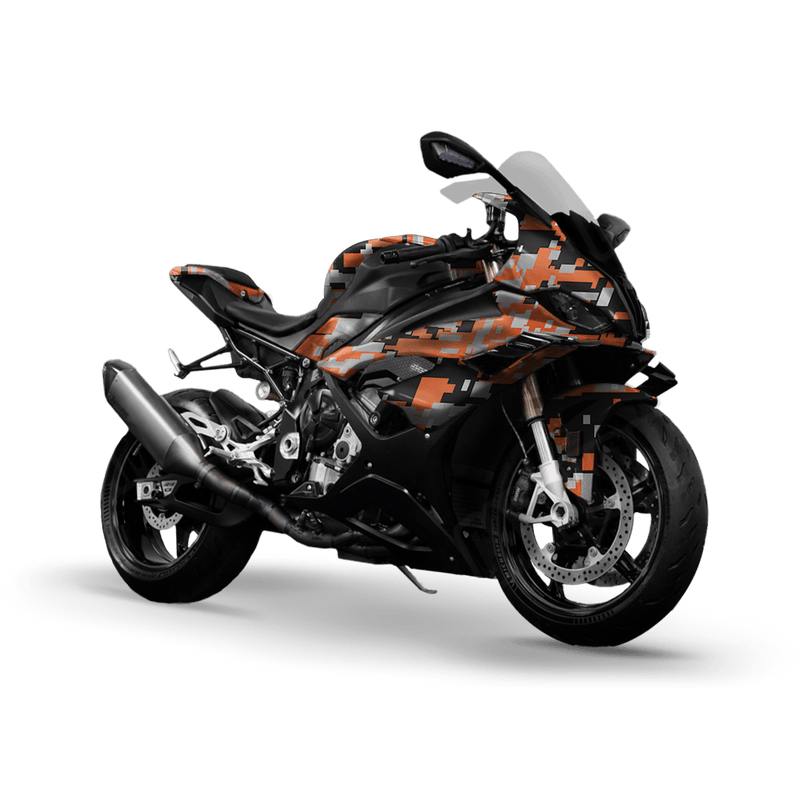 Give your bike a cutting-edge tactical look with Digital Orange Tiger Sports Bike Wrap. Modeled after military digital camouflage, this pattern uses pixelated blocks of varying sizes and colors to create a sharp, modern style. Perfect for riders who want their sport bike to project speed, precision, and a battle-ready edge.