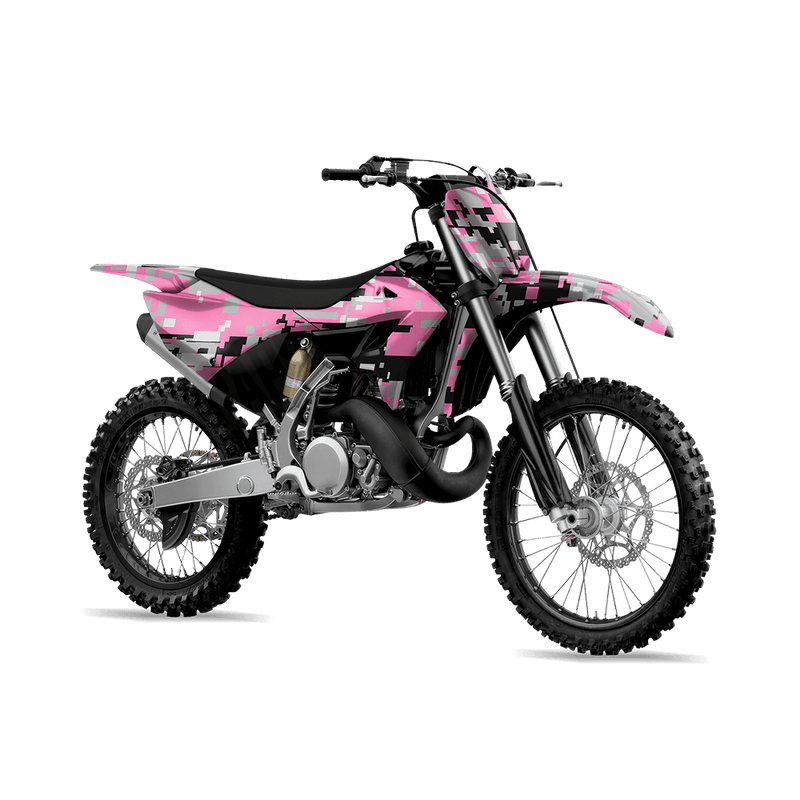 Digital Pink Tiger delivers the sharp, pixelated look of modern military camouflage. Built from varying-sized digital blocks, this design creates a clean, tech-inspired camo that feels both tactical and futuristic. For riders who want their dirt bike to stand out with a strong, structured pattern rooted in military heritage, Digital brings a bold and unmistakable style.