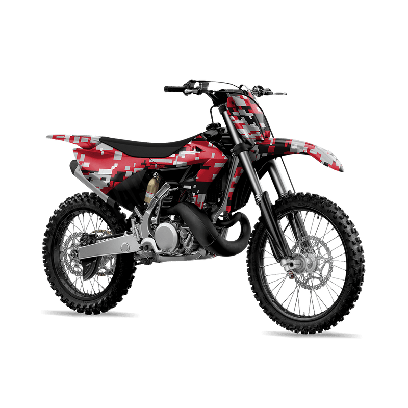Digital Red Tiger delivers the sharp, pixelated look of modern military camouflage. Built from varying-sized digital blocks, this design creates a clean, tech-inspired camo that feels both tactical and futuristic. For riders who want their dirt bike to stand out with a strong, structured pattern rooted in military heritage, Digital brings a bold and unmistakable style.