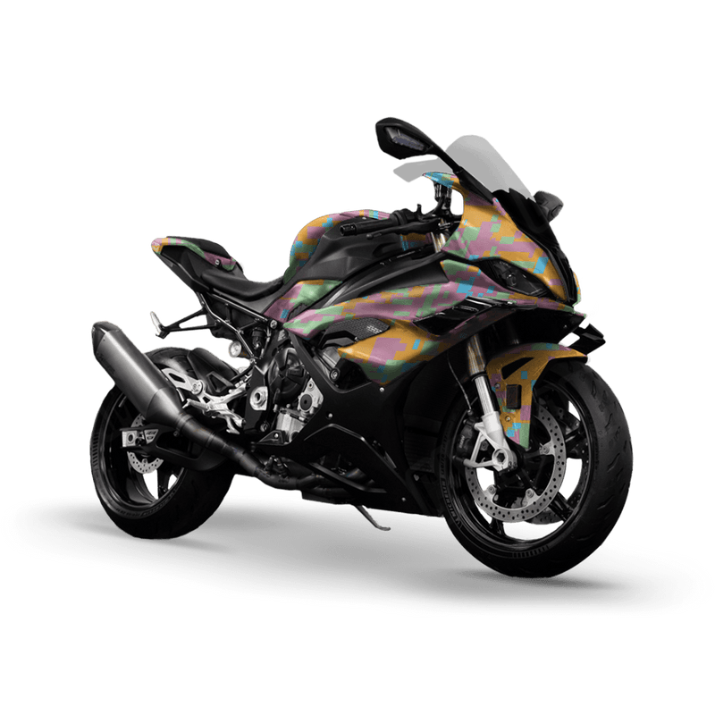 Give your bike a cutting-edge tactical look with Digital Sherbert Sports Bike Wrap. Modeled after military digital camouflage, this pattern uses pixelated blocks of varying sizes and colors to create a sharp, modern style. Perfect for riders who want their sport bike to project speed, precision, and a battle-ready edge.